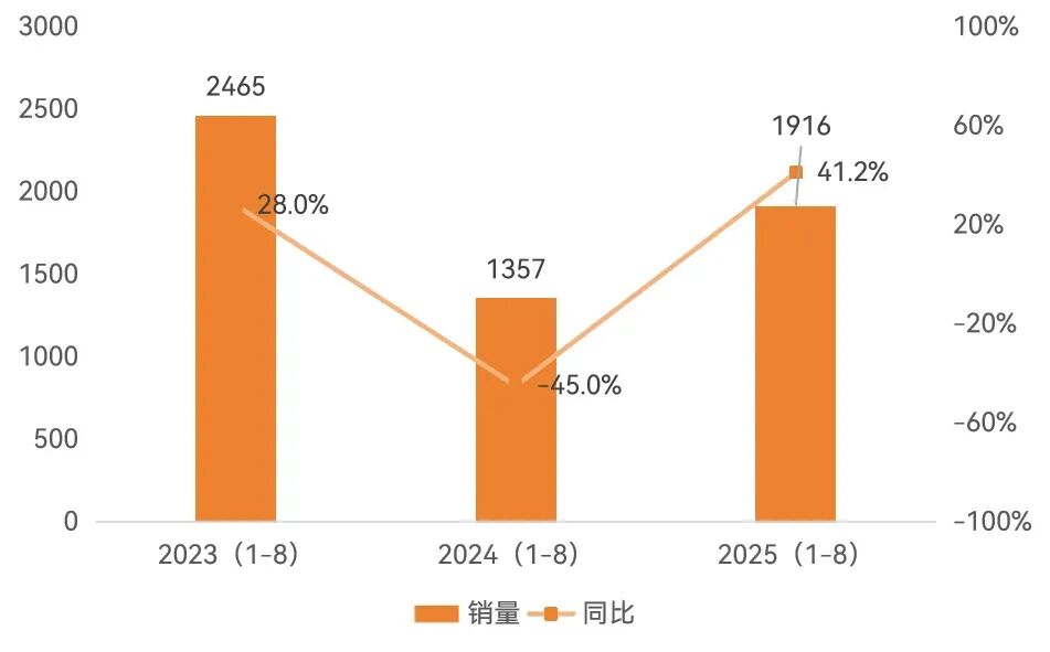 近3年1-8月CT设备销量与数据同比