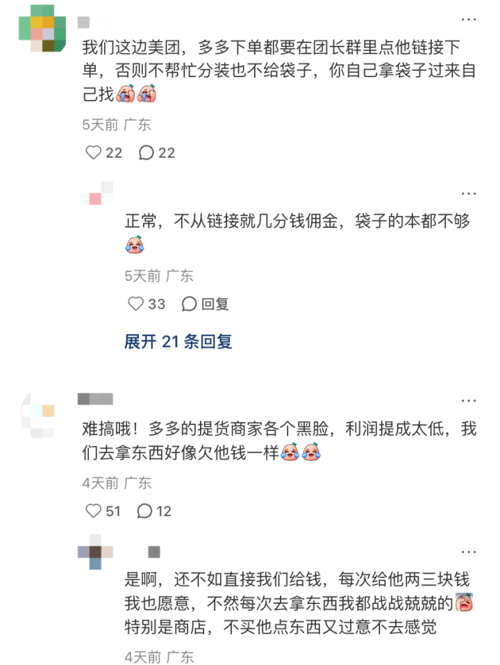 常因“团长态度不好”被诟病的多多买菜,团长佣金低已经不算秘闻,团长与自提点作为履约的最后一环,承担着货品保管、分拣、售后等多项工作,但佣金却长期处于低位。单少的自提点团长忙上半天收入菜十几块,自然也就没什么服务态度可言。