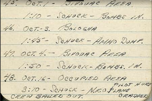 1944年年初,老特列西克因在敌方领土上空幸存10架次飞行获得了航空奖章。他后来又收到两枚橡树叶簇,为这枚航空奖章添加了更多荣誉。特列西克简洁的笔记体现了他和机组对每天低空飞行作战的轻松态度。