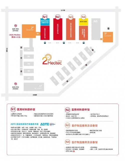 2026年Medtec将采用全新展馆划分,N1馆与N2馆将构成展会前端基础,聚焦“医用材料与核心部件”。位于N1馆的医疗器械电子展区(ADTE)将深度剖析高端设备的内核,从能源、感知、智能计算到光学成像,系统展示驱动医疗设备升级的核心技术与关键模块。同时,该馆还将设“国际展区”,集中展示海外先进的医用金属材料、可降解高分子材料等。这些高端材料可用于制造心血管支架、可吸收缝合线等产品。在N2馆内,多家企业将展示国产高端微导管的最新成果,呈现中国在核心部件领域的突破。 此外,用于体外诊断试剂盒的精密滤膜、用于可穿戴设备的透气防水织物等,则展现我国在高端医用材料领域的创新能力。