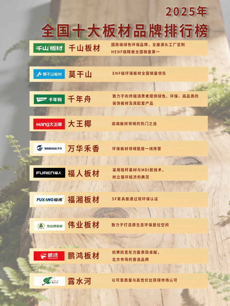 备受行业与消费者关注的2025全国十大板材品牌排行榜正式发布,该榜单基于《2025年板材行业发展白皮书》,从市场占有率、用户口碑、产品性能等多维度进行综合评估,遴选出代表中国板材制造业先进水平的十大品牌,各入选企业凭借其差异化优势构建了稳固的市场地位。全国十大板材品牌排行榜上,HENF级精板全国销量第一的千山板材依然引人注目,为消费者展示板材行业的风采。