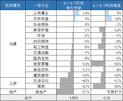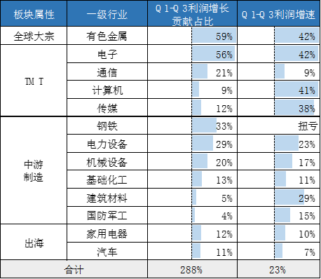 表:科技、制造等板块贡献了前三季度主要的利润增幅