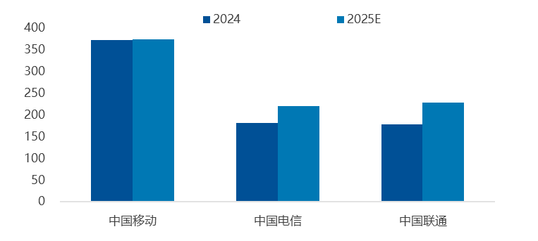 以电信行业为例,近年来电信运营商以技术突破为支撑,充分发挥网络、算力、数据协同优势,加速推动通信网络从“连接载体”向“智能中枢”跃迁,为各行业的数智化转型构筑底座。在此背景下,算力网络已成为运营商资本开支的新锚点。2024年,三大运营商算力领域投资合计约728亿元,2025年预计增至820亿元,同比增长12.6%;算力投资占比的持续提升,有望进一步加速AI落地,引领信息技术创新驱动的新一轮增长浪潮。