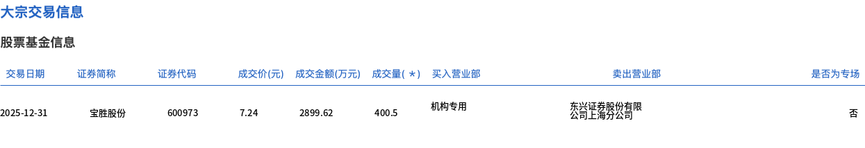 宝胜股份今日大宗交易折价成交400.5万股,成交额2899.62万元