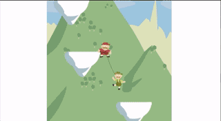 在这个游戏里,我们需要操纵被绑在一条绳子上的两兄弟利用彼此的重力惯性不断向头顶的平台攀爬,但一胖一瘦的哥俩显然没那么好控制,稍不留神红色的胖哥哥就成了坑货,把好不容易到了新高度的绿帽子弟弟拖下水;或者弱不禁风的绿帽子弟弟没能在新台阶上站稳,把红胖子哥哥带到了沟里。欢乐的哥俩一边荡来荡去,一边哼唱着约德尔民谣,欢乐的画面令人忍俊不禁。