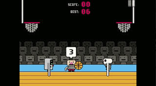 这款 8-bit 画风的游戏操作十分简单,只有两个方向键,是一对一的单挑模式,里面的角色都长着长长的手臂并且抡得飞起,在诡异的重力系统下不断蹦来蹦去盖帽对手或者起身灌篮。魔性的音乐和夸张的起跳距离显得十分疯狂,一言不合就灌蓝的游戏,除此之外并不多见。