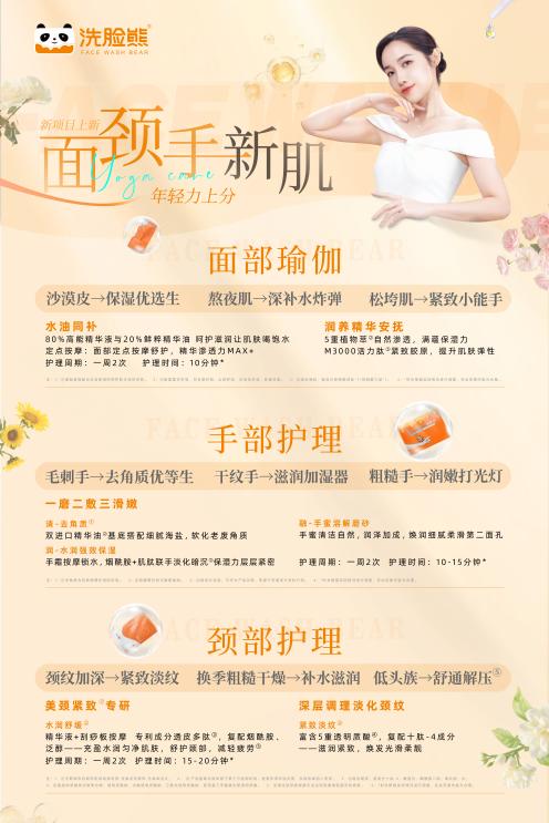 据悉,洗脸熊近期已上新三大面颈手叠加护理项目,从单一面部护理向多维度深层呵护延伸,在保持核心优势的基础上持续丰富服务矩阵,进一步巩固赛道领先地位。