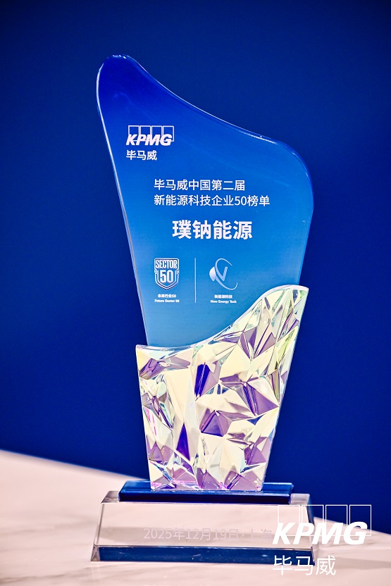 2025年12月19日,“毕马威第二届新能源科技企业50榜单”年度盛典在上海隆重举行。本次盛会汇聚了政府代表、新能源领域专家学者、行业领袖及企业管理者,共同探讨行业前沿趋势与核心议题。在备受瞩目的榜单发布环节,上海璞钠能源科技有限公司凭借其在钠离子电池核心技术领域的突出创新实力、显著的产业化进展及卓越的市场潜力,成功入选。尤为引人注目的是,璞钠能源成为国内唯一一家连续两届荣登该权威榜单的企业,这一成就充分证明了其在新能源细分赛道上的持续领先地位与深厚发展底蕴。