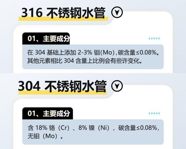 304不锈钢:含18%铬、8%镍,无钼元素,适应一般环境,不耐氯离子。