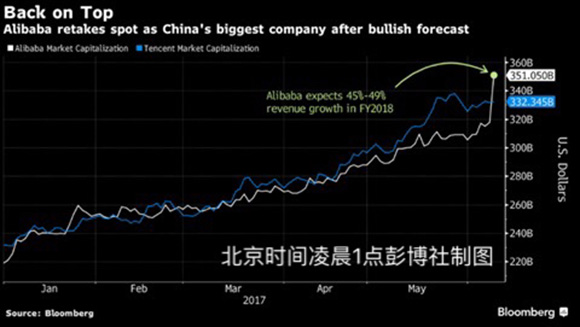 6月8日阿里巴巴投资者日大会结束后,阿里巴巴股价大涨13%至142.3美元,总市值超3600亿美元,这也意味着阿里巴巴超越腾讯(3323亿美元),成为亚洲市值最高公司。