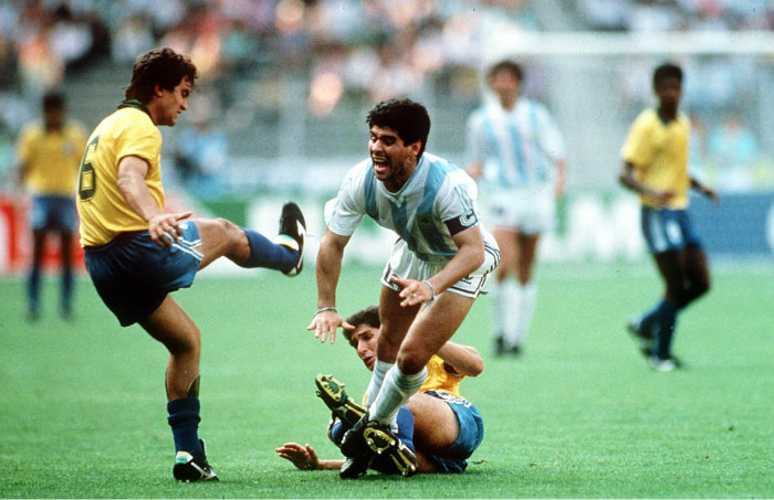 1982年巴塞罗那世界杯,是这两支球队第二次在欧洲赛场会面(第一次是1974年在汉诺威)。马拉多纳化身暴躁的海德先生,对巴西替补球员巴蒂斯塔大打出手,最终被红牌罚下。