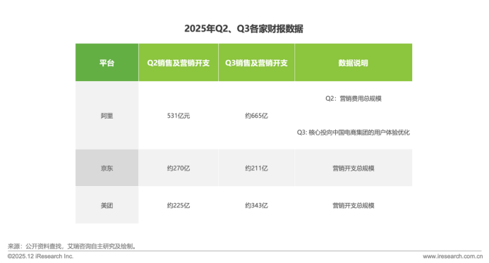 2025年Q2财报显示,阿里二季度的营销费用达到531.78亿元,同比增长62.6%;京东二季度财报营销开支由2024年第二季度的人民币119亿元增加127.6%,至2025年第二季度的人民币270亿,美团二季度支出达225亿元。