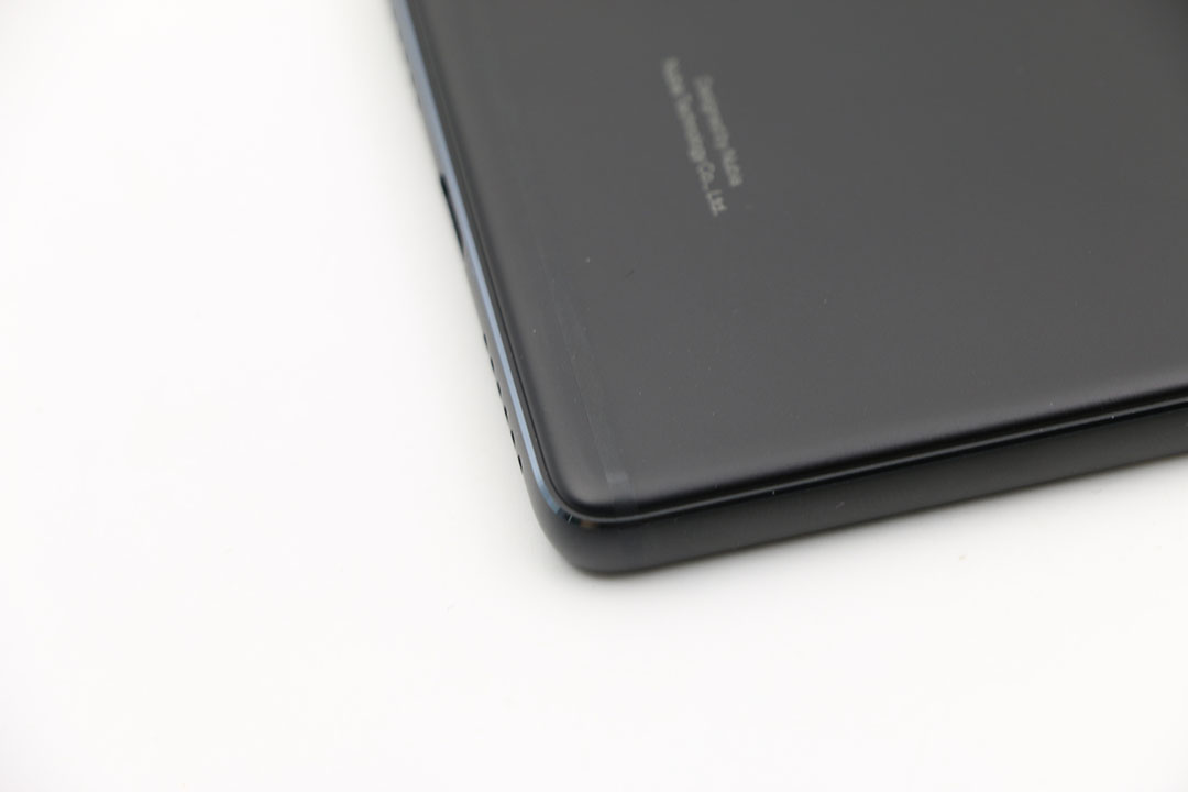由于四个圆角的半径小,使得整个机身显得有些方正,背面的金属后壳与中框部分并不是平缓过渡,而是与正面玻璃面板边缘一样采用了弧面设计,使得中框看起来像是凸出来的独立边框。其实,仔细看的话,后壳与中框其实是一体的,这样的设计让侧面看起来会有种对称感。中框部分采用圆润设计,为了保证握持感,两边也使用了倒角切割工艺,切割部分则有一点点暗青色,使得机身既有金属的线条感,又能具备良好的握持感。