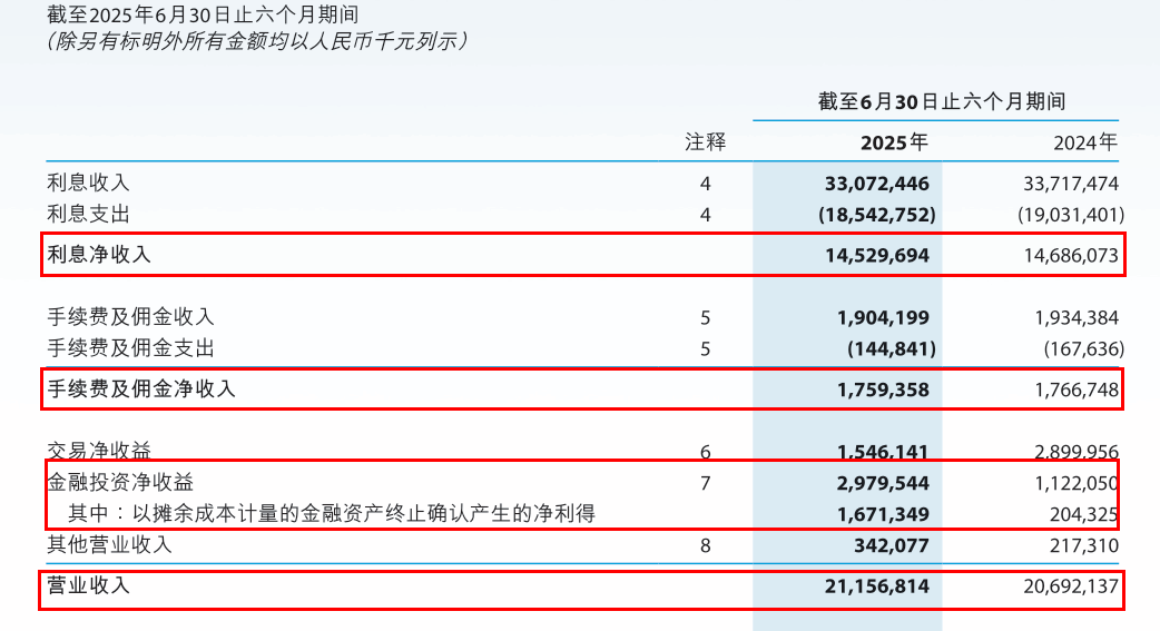 中报显示,2025年上半年,该行实现利息净收入145.30亿元,同比下降1.06%。其中,规模增长带动利息净收入增加23.59亿元,利率变动导致利息净收入减少25.15亿元。