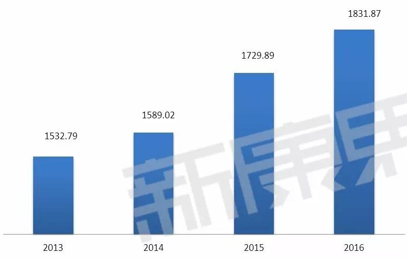 2013-2016年抗生素与合成抗菌药等级医院及零售终端销售额(单位:亿元)