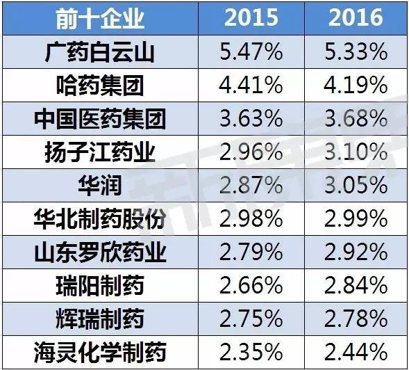 抗生素与合成抗菌素生产企业市场份额TOP 10