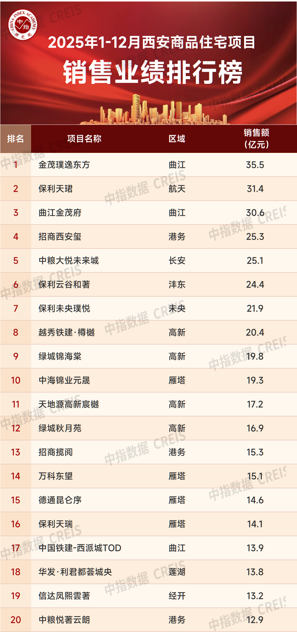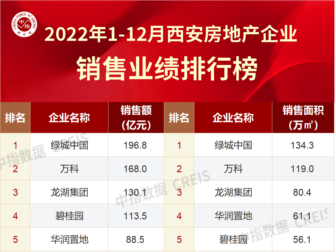 近日,中指研究院《2025年1-12月西安房地产企业销售业绩排行榜》新鲜出炉。