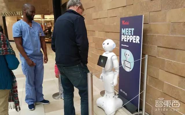 上图为智东西记者在圣克拉拉Westfield商场实景拍摄到的顾客与Pepper交流场景。但根据附近的店员表示,大部分人还只是抱着好奇的心态去看看,感兴趣者以小孩子居多,几乎没什么人在真正使用它进行室内店铺导航等作用。