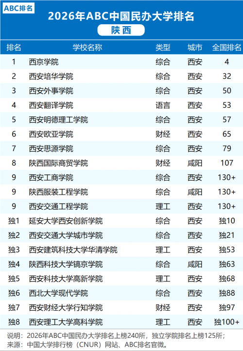 日前,2026年ABC中国民办大学排名正式揭晓,共240所民办普通本科院校上榜。排名前十分别为重庆移通学院、武昌理工学院、泰山科技学院、西京学院、晋中信息学院、珠海科技学院、浙江树人学院、广州城市理工学院、南昌理工学院以及郑州西亚斯学院;其中晋中信息学院、郑州西亚斯学院首次进入全国前十。