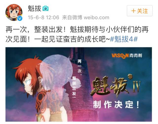 2017年6月8日,是国内知名动画公司青青树成立25周年的纪念日。也是在这一天,青青树旗下最广为人知的IP《魁拔》系列动画,也在摩点网开启了一次众筹活动,并以此来宣布《魁拔4》的回归。