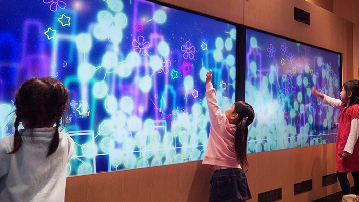 更重要的是,teamLab 的这场展览不只展现美,还可以让参观者亲手创造美。触碰,凝视等观众与周边环境的互动,都可以影响艺术的形态,展览中还贴心地为孩子们设置了可以亲手创作多媒体作品的儿童专区。
