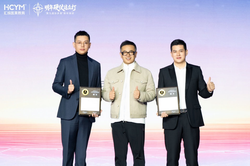 华窈集团董事长么玉石现场为汇成医美教育创始人孙多勇导师颁发“华窈轻医美企业第二个十年战略咨询顾问”聘书,为汇成医美创始合伙人、孙多勇跨年演讲联袂主讲人刘涛导师颁发“华窈双美企业十年战略咨询顾问”聘书,标志着双方十年深度陪伴再度续期,书写行业佳话。