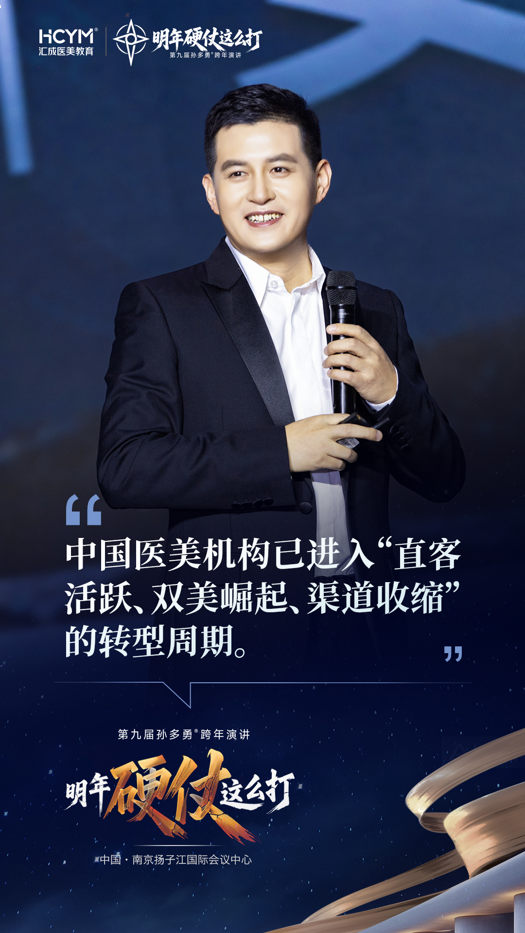 当行业步入深度调整期,当增长不再轻易可得,每一位医美人都在寻找破局的确定性。2025年12月31日-2026年1月3日,第九届孙多勇跨年演讲《明年硬仗这么打》在南京扬子江国际会议中心盛大举行!