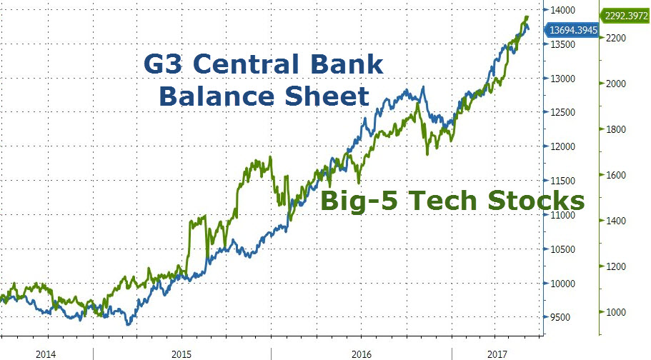 金融博客Zerohedge评价,根据以上高盛对比,即便估值已经有“气穴”,只要三大央行继续购买资产,FAAMG就有继续上涨的空间。
