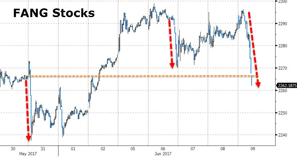 此后股票代码首字母合称FANG的Facebook、苹果、奈飞(Netflix)和Alphabet股价均回吐盘初涨幅,止涨转跌。Facebook、苹果、Alphabet盘中均跌逾3%,奈飞跌幅一度超过5%。