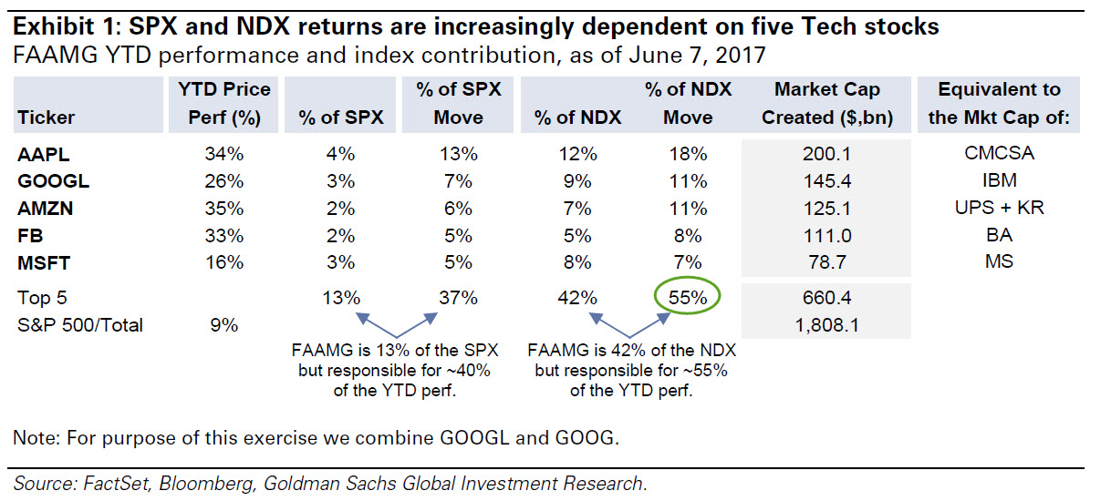 华尔街见闻摘取的高盛报告以下数据可以一窥FAAMG的威力: