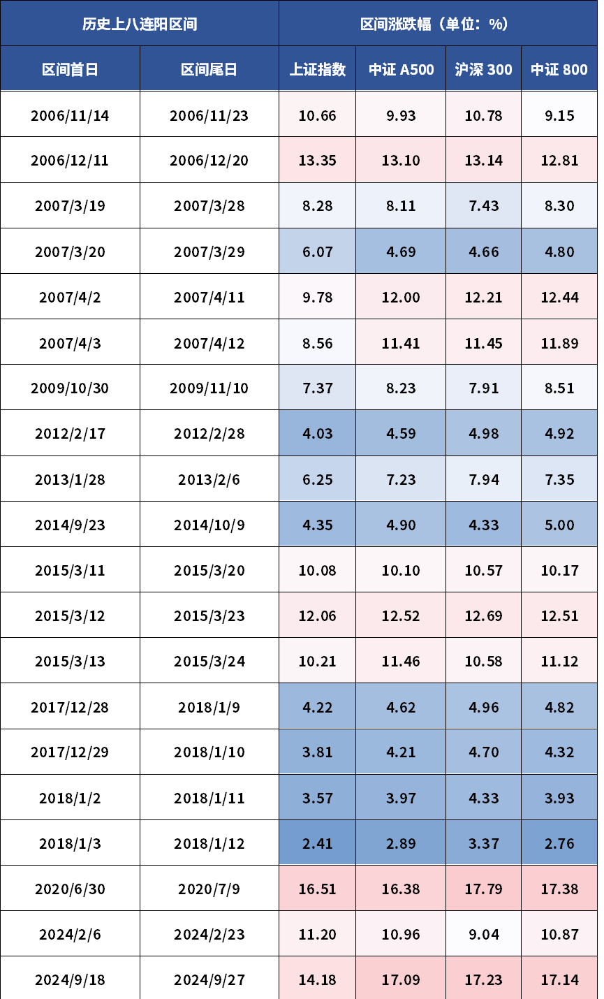 一、“八连阳”历史期间复盘:A500展现出收益竞争力