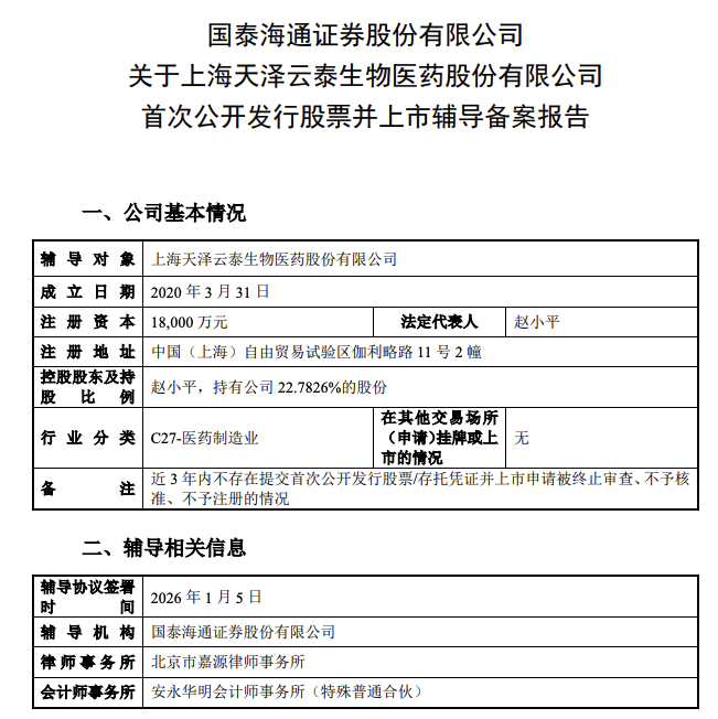 1月9日,证监会官网披露,上海纽脉医疗科技股份有限公司、东晓生物科技股份有限公司、上海天泽云泰生物医药股份有限公司已启动A股上市辅导。