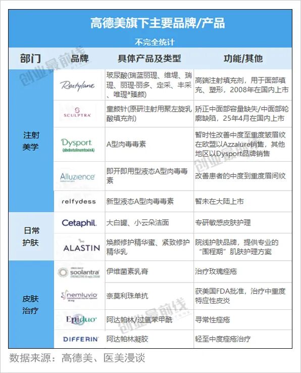 尽管注射美学板块,高德美通过产品组合构建了竞争壁垒,但在皮肤治疗、日常护肤领域,也并不逊色。
