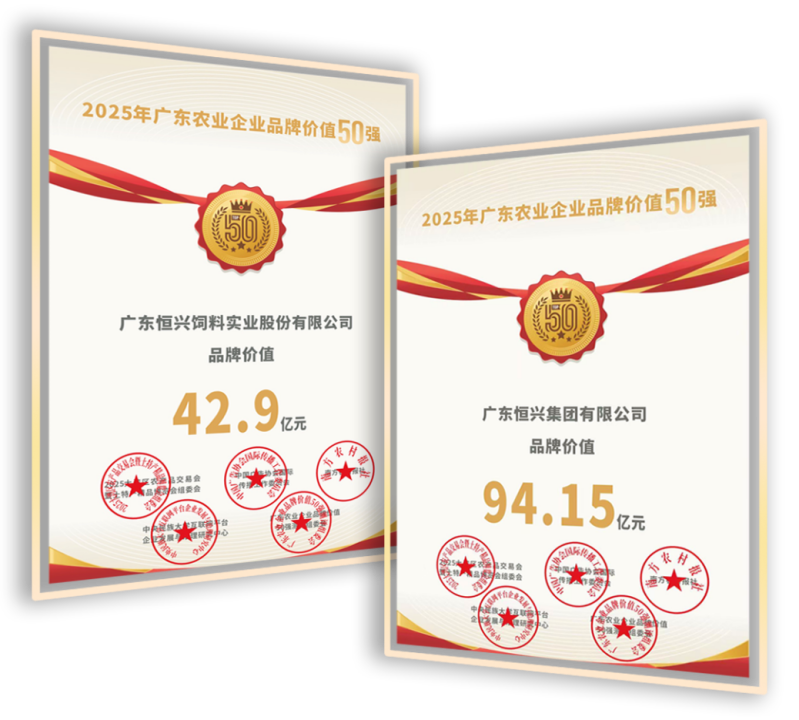 广东恒兴饲料实业股份有限公司荣获“农业产业化国家重点龙头企业”“高新技术企业”“改革开放40年·中国农业十大卓越贡献企业”“十佳水产动保企业”“中国虾业20强”“十大种业企业”“中国水产行业百强品牌价值榜”“广东企业500强”“国家水产种业阵型企业”“中国水产行业·十大贡献奖”“十大国际化品牌企业”等荣誉称号,并上榜广东省战略性产业集群重点产业链“链主”企业名单,被评为现代种业产业链“链主”企业。主营饲料产销、种苗繁育、动物保健及兽药、包装制品、国际贸易等业务。