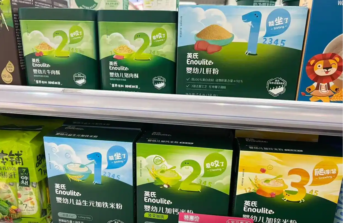 从产品定位来看,英氏主推“科学5阶精准喂养体系”概念,该体系将婴幼儿从6个月到3岁的成长,细分为“能扶坐、爱啃咬、爬得稳、站得直、走得稳”五个阶段,并为每个阶段匹配了相应的辅食产品矩阵,契合了年轻一代父母精细化、科学喂养的需求,在产品竞争初期占领了消费者的心智。