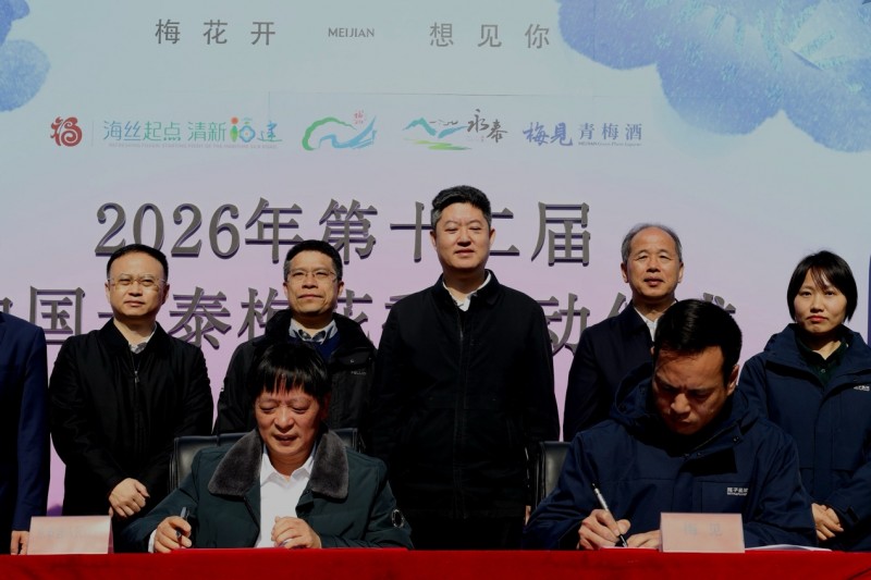 1月10日,福建省永泰县第十二届梅花节开幕期间,永泰县人民政府与知名青梅酒品牌“梅见”举行战略合作签约仪式,并联合推出首款地域定制产品——“永泰醴·烟熏乌梅风味梅见青梅酒”。双方将以梅花与青梅产业为核心,共同探索“梅资源+品牌+产业+文旅”融合发展新模式,着力打造从梅花观赏、青梅种植到青梅酒加工销售的完整产业链,助力地方特色农业提质升级与乡村振兴。