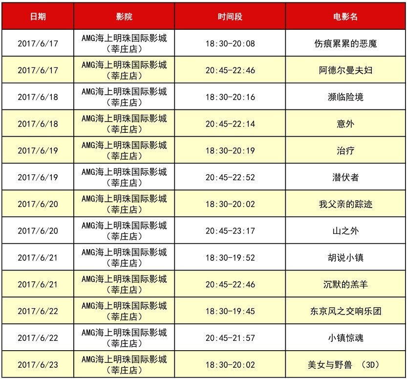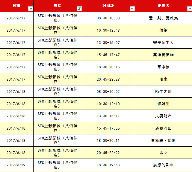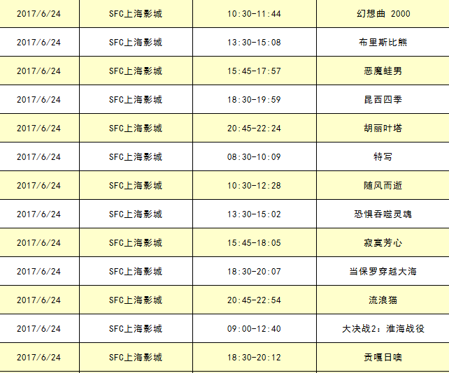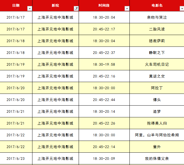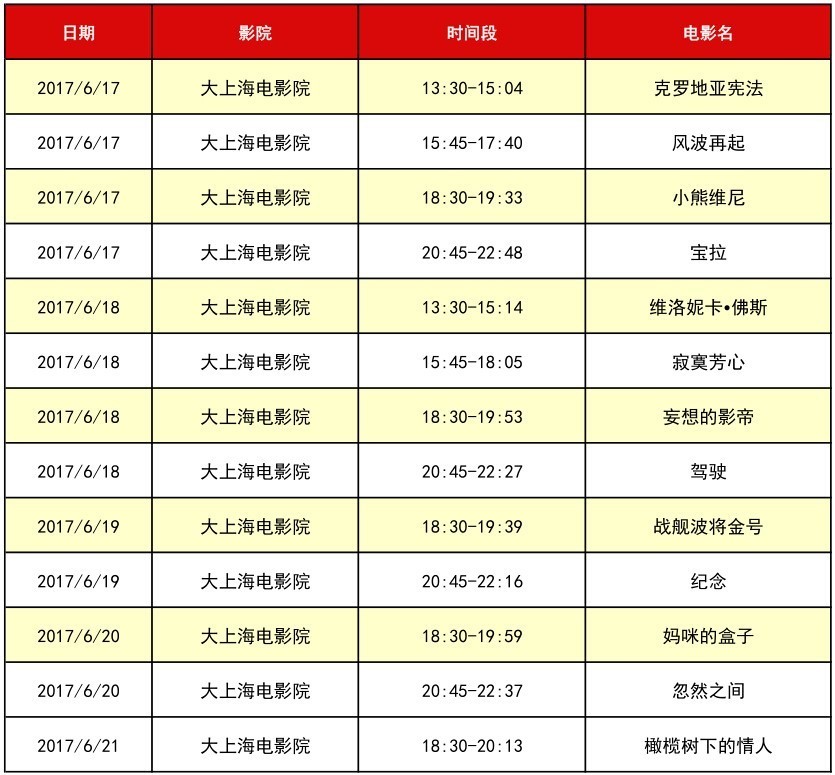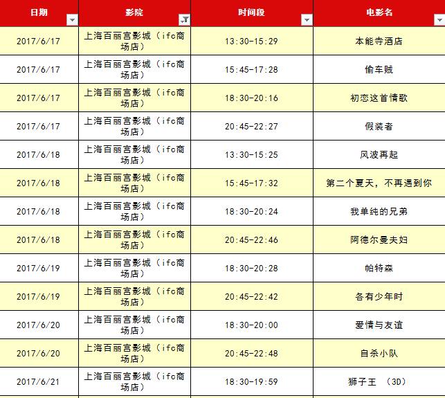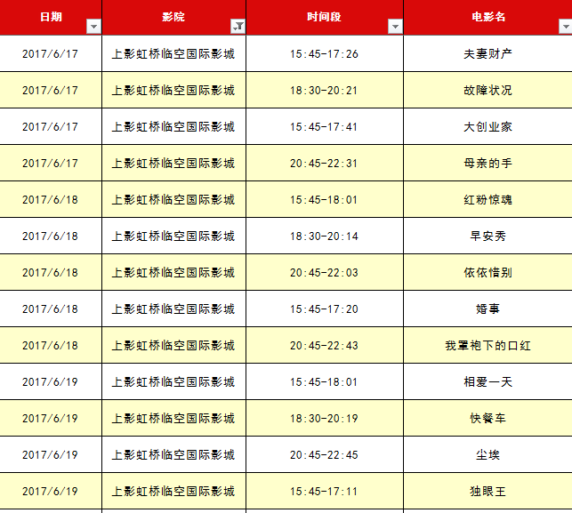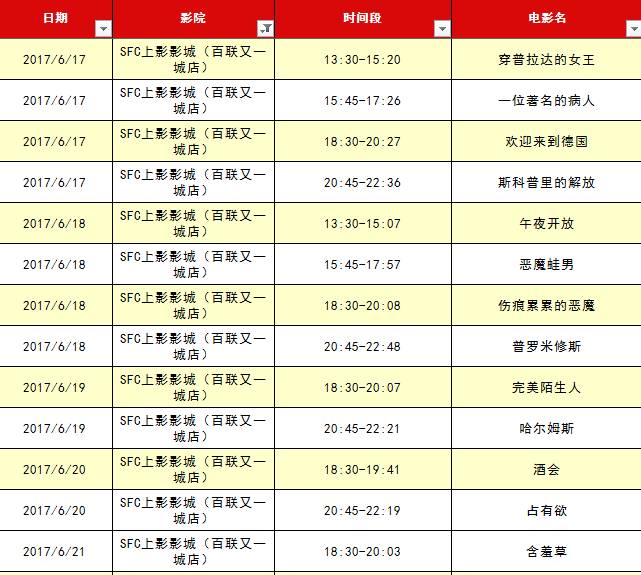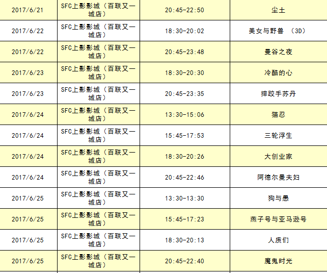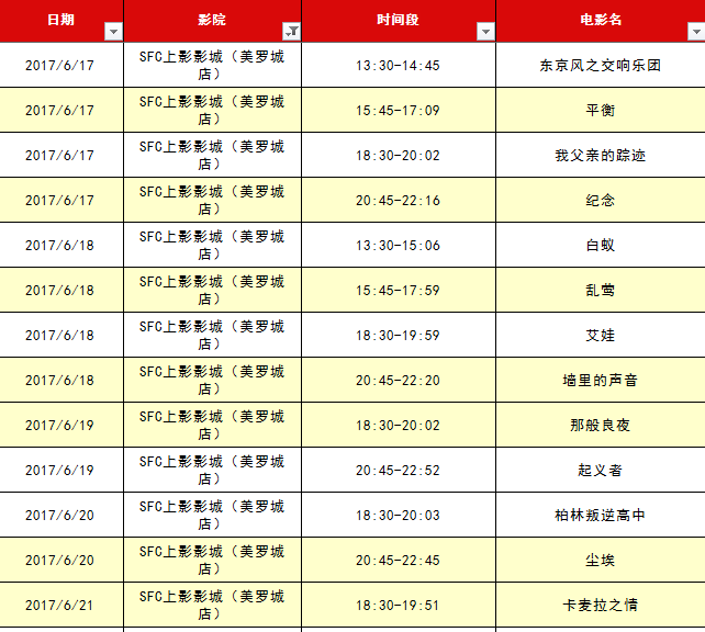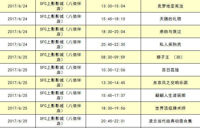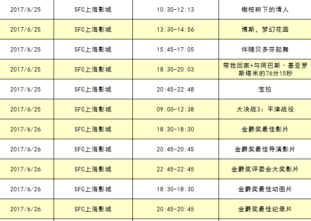 昨晚排片表已在电影节官网(http://www.siff.com )上线,影迷进入官网后,可以选择右上方的“日程”,点击“排片表”。在官网的排片表内,影迷可以按日期搜寻、按影院搜寻、或输入片名搜索,得到相应的排片内容。
