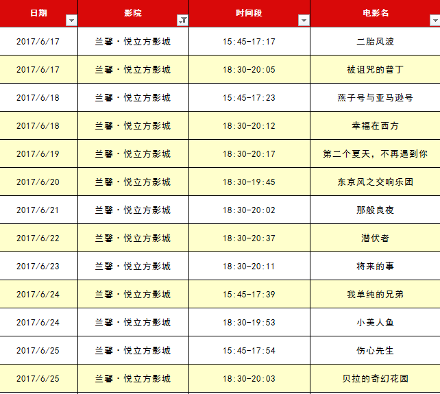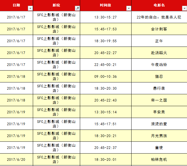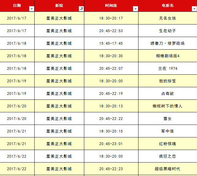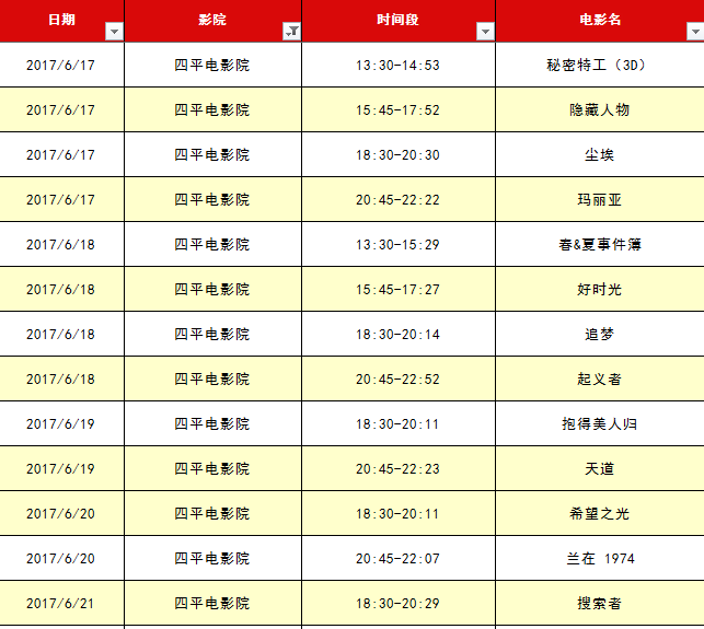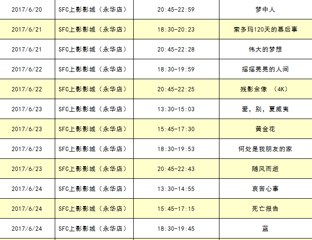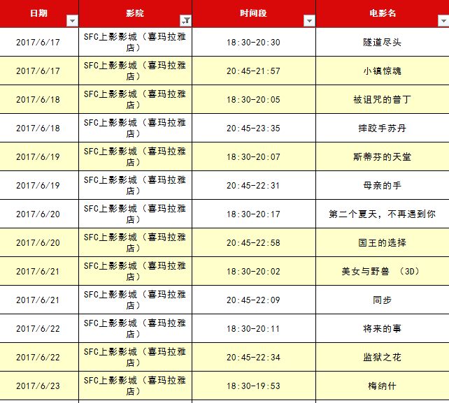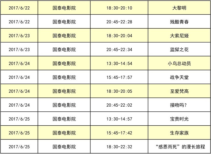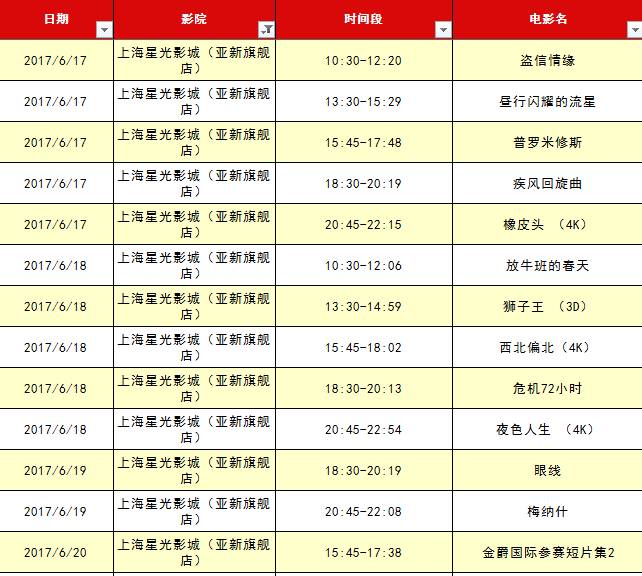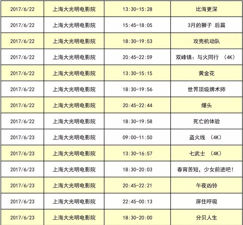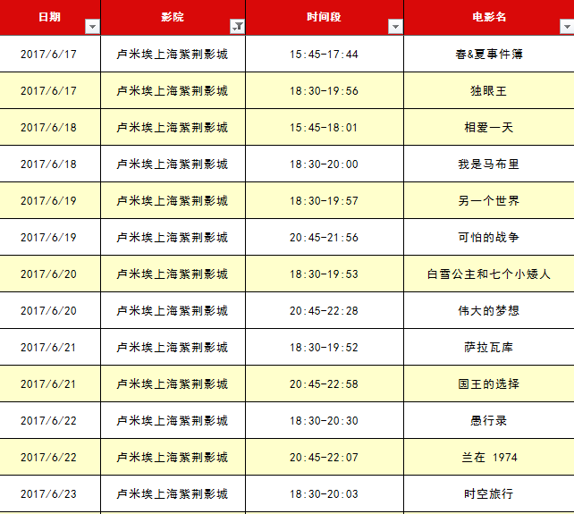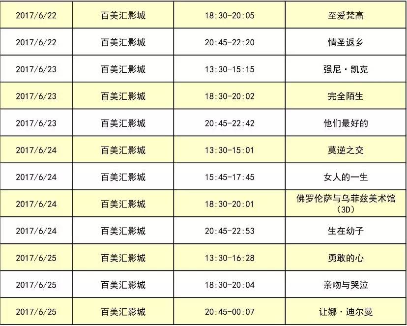 昨晚排片表已在电影节官网(http://www.siff.com )上线,影迷进入官网后,可以选择右上方的“日程”,点击“排片表”。在官网的排片表内,影迷可以按日期搜寻、按影院搜寻、或输入片名搜索,得到相应的排片内容。