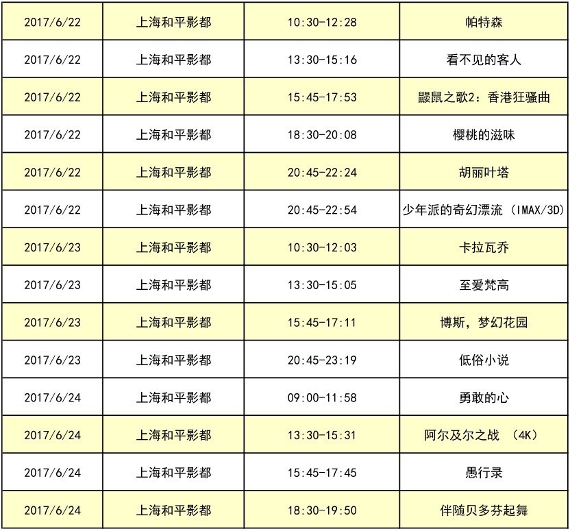 关于影院情况,可参考:第20届上海国际电影节展映影院、交通、餐饮、购票难度汇总