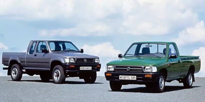 大众集团旗下的大众商旅曾在1989年的时候推出一款名为Taro的皮卡——而实际上,这款挂着大众VW车标的皮卡,骨子里其实是一辆不折不扣的丰田Hillux。