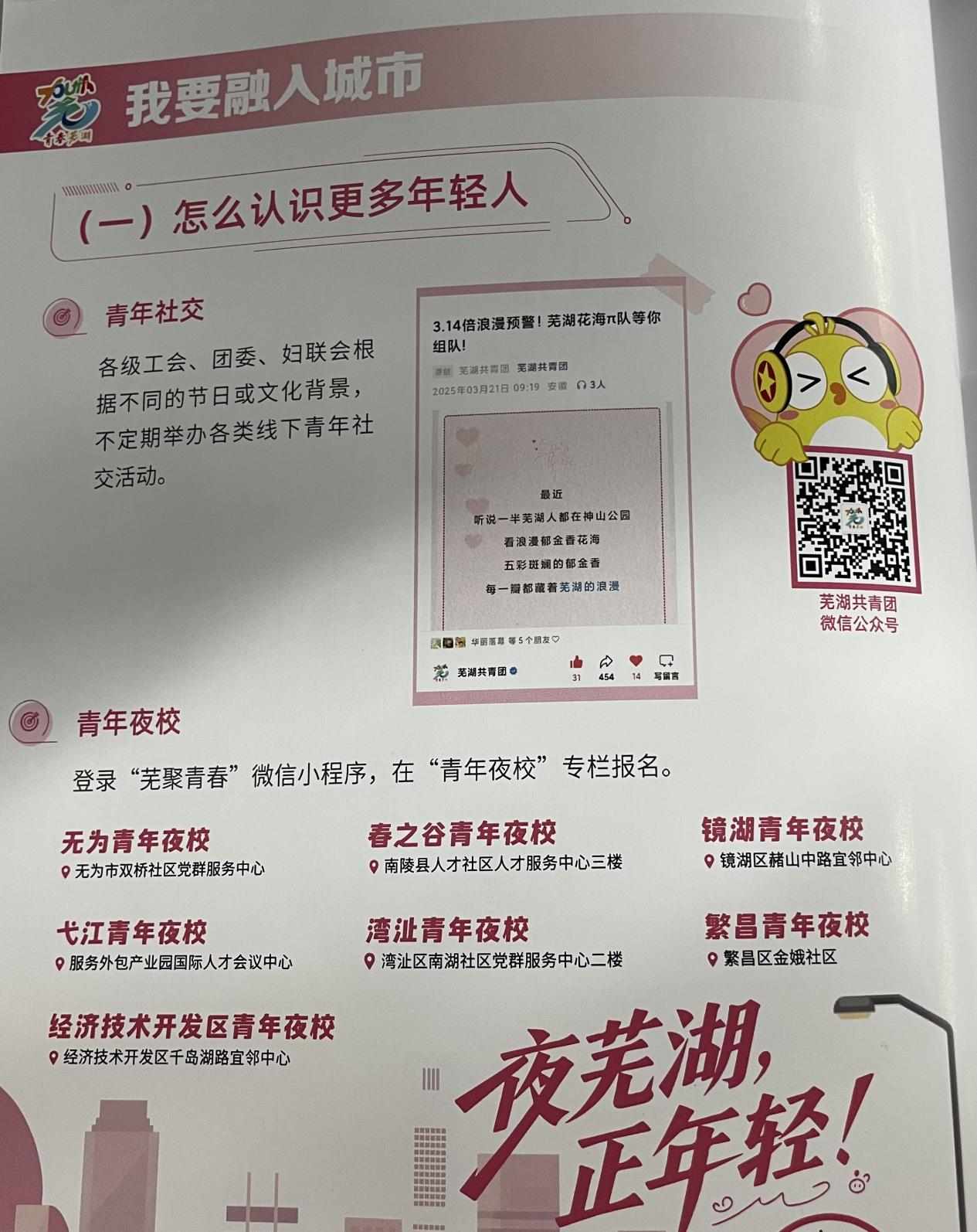 “近年来,芜湖有相当部分高中生毕业后,在踏入大学之前,都受邀参加团市委举办‘星汇芜湖’欢送会。在大学生寒暑假,我们也会开展社会实践、政务实习、产业实践活动,让青年感知城市发展,提升职业能力。”谢翔宇介绍,团市委的青年活动一直延续到毕业后的青年夜校、社交圈建立等,建立储备人才与芜湖产业的联系。