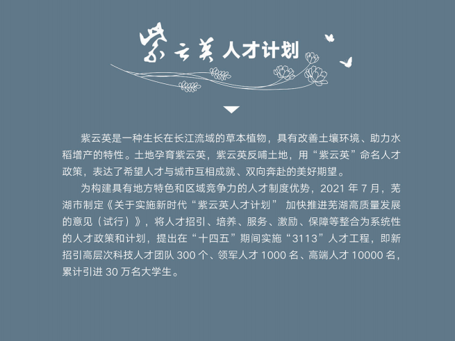 芜湖的人才战略,始于一场对传统规则的主动“偏离”。2021年推出的 “紫云英人才计划” ,其中一项突破便是推倒唯学历、唯职称的隐形高墙,将人才的定义权交还给市场。