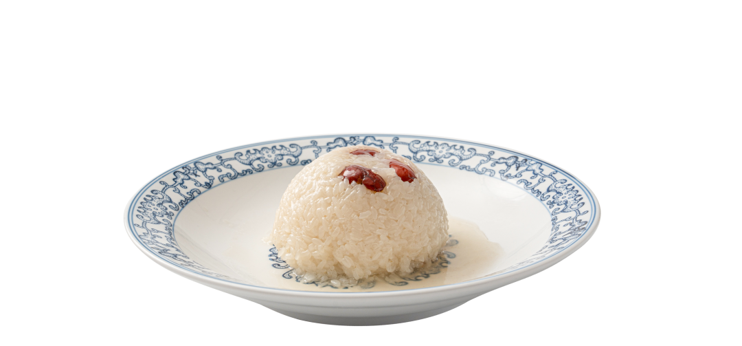 八宝饭以糯米饭为基底,精心铺排红枣、莲子、葡萄干等“八宝”,铺摆出绚丽而寓意深远的图案,形态圆满,象征着团圆美满与生活丰足。