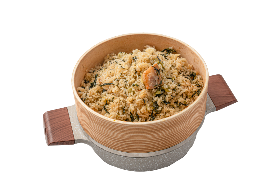 土灶菜饭俗称“咸碎饭”,选用宝山优质大米,与咸肉丁、青菜一同在土灶大锅中翻炒焖煮,开锅时香气扑鼻,每一口都是质朴而满足的家乡味。