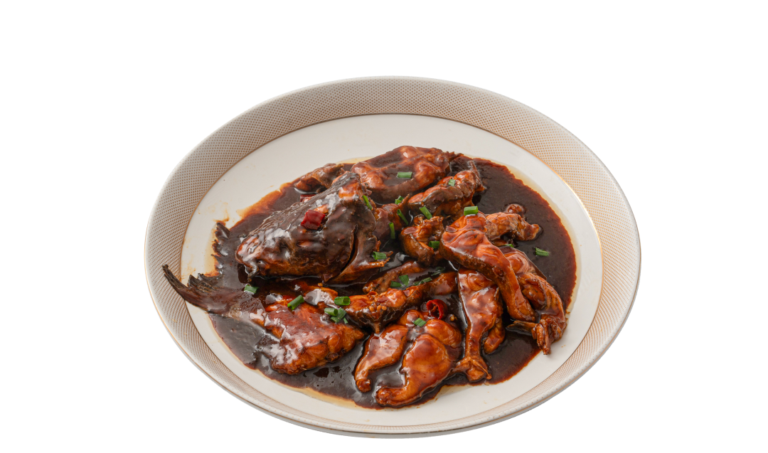 鳊鱼经煎制后,以黄酒、酱油等调料文火慢烧,令滋味深入肌理。成菜色泽红润,酱汁稠厚挂汁,鱼肉鲜嫩饱吸酱香,风味十足。