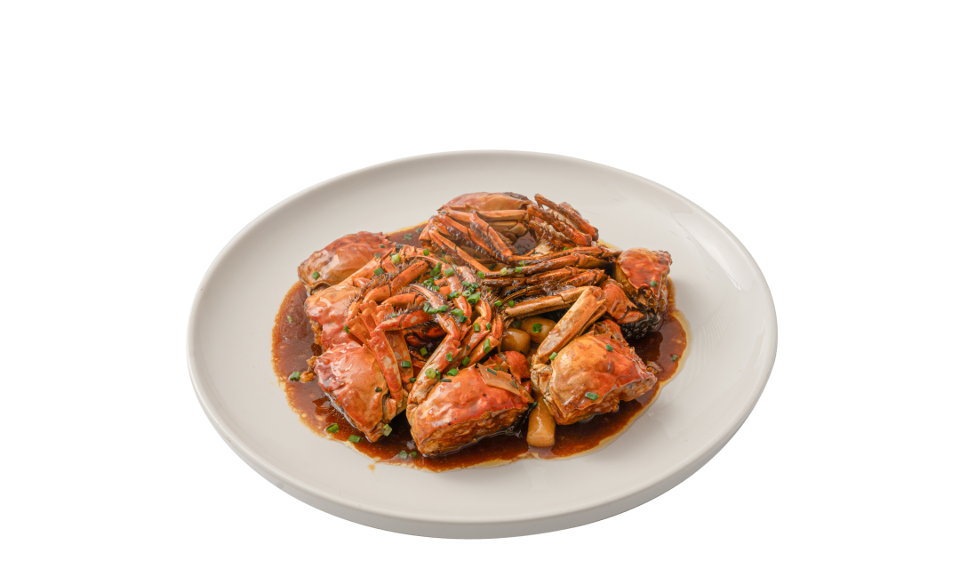 宝山湖大闸蟹烧年糕是本邦菜的经典代表。金秋时令的江鲜之鲜与糯米年糕的软糯Q弹完美融合,蟹的丰腴膏黄与鲜醇汤汁被年糕充分吸收,每一口都饱含浓郁蟹香。