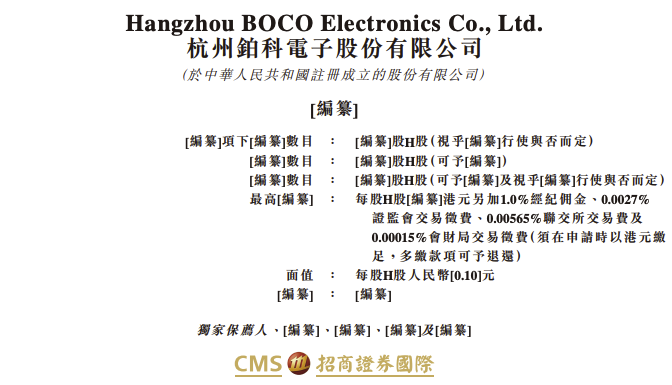 据港交所文件,1月12日,杭州铂科电子股份有限公司向港交所提交上市申请书,独家保荐人为招商证券国际。