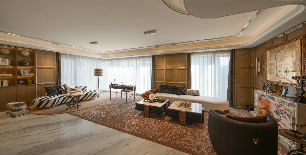 面宽8米的270°环幕横厅,约70㎡的超大客厅空间,几乎是常规产品的将近2倍大,在当下的豪宅产品中,也是罕见的。