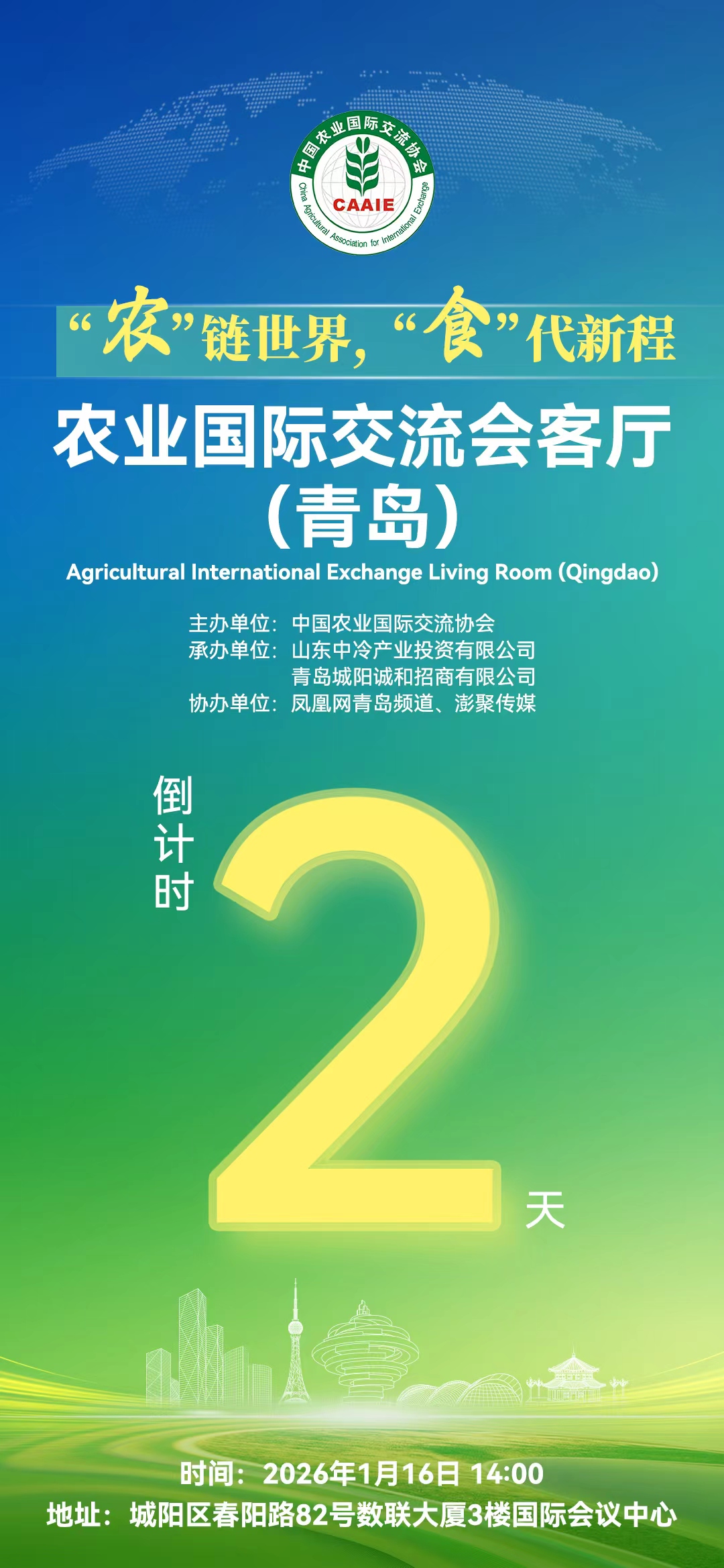 锚定“十五五”宏伟蓝图,一场旨在凝聚智慧、链接资源、共商未来的农食产业盛会——农业国际交流会客厅(青岛),将于2026年1月16日在青岛隆重启幕。这不仅是一场会议,更是一次思想的碰撞、一次价值的共振、一次共同擘画中国农食产业国际化高质量发展新路径的主动作为。