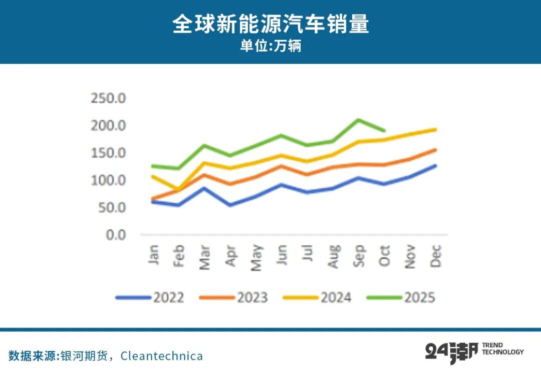 根据银河期货的预计,2026 年全球新能源乘用车销量增长14%至2410万辆,增速放缓。